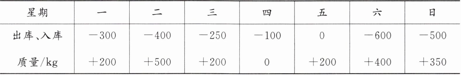 1. 下面是某超市一周食用油库存质量的变化情况。(入库为正,出库为负)