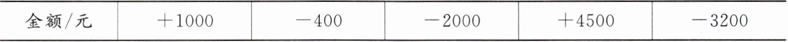 |金额/元|$ +1000 $|$ -400 $|$ -2000 $|$ +4500 $|$ -3200 $|