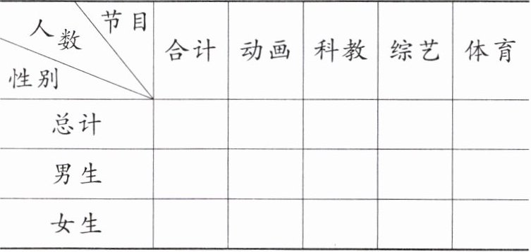 |人数 节目 性别|合计|动画|科教|综艺|体育|
