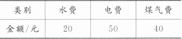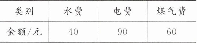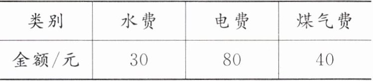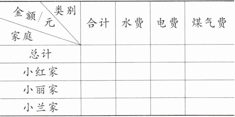 |金额/元 类别 家庭|合计|水费|电费|煤气费|