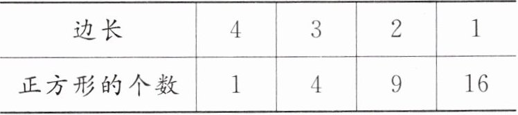 方法一 先分类,再列举。假设小方格的边长为1。分类:边长为4的正方形,边长为3的正方形,边长为2的正方形,边长为1的正方形。一共4类。