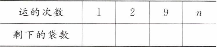 2. 仓库里有大米$a$袋,一辆小车每次运走$50$袋,根据条件填写下表。