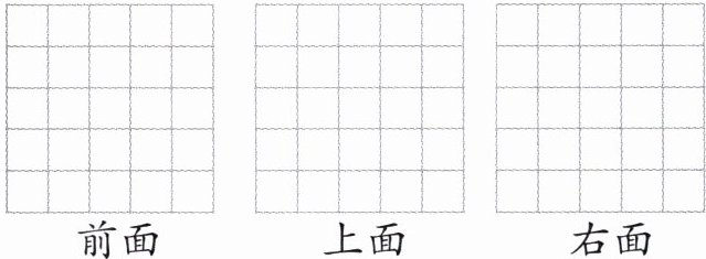 锦囊妙计 要计算这个物体的表面积,可以数出从它前面、上面和右面看各有几个小正方形,就可以确定它的后面、下面和左面各有几个小正方形。
