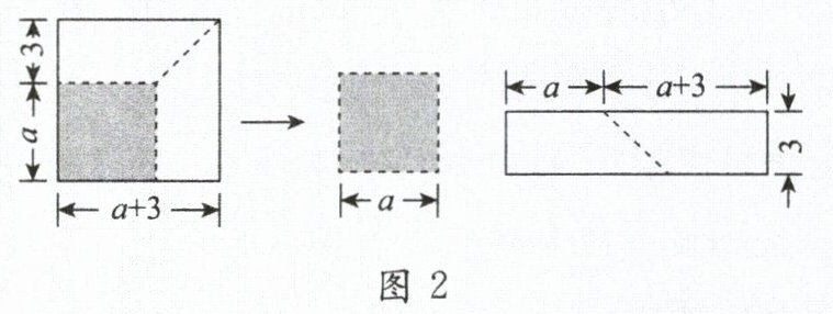 7. 如图 2,将边长为$a + 3的正方形纸片剪去一个边长为a$的正方形后,剩余部分可剪拼成一个长方形(不重叠且无缝隙),拼成的长方形一边长为$3$。