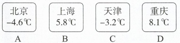 2. (2024广西中考)下列选项记录了我国四个直辖市某年一月份的平均气温,其中气温最低的是(