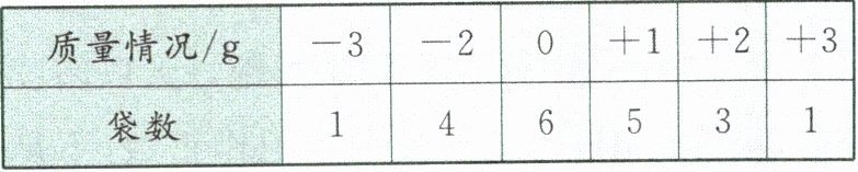 (1)−3表示这袋食品的质量比标准质量少3g,0表示这袋食品的质量等于标准质量,+2表示这袋食品的质量比标准质量多2g.
