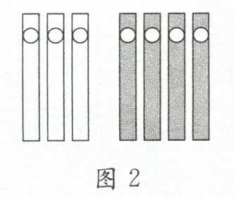 3. (数学文化)我国人民很早就开始使用负数计数。魏晋时期的数学家刘徽在其著作《九章算术注》中用不同颜色的算筹(小棍形状的计数工具)分别表示正数和负数。图1表示的算式是$(+1)+(-2)$,根据这种表示方法,可推算出图2表示的算式是(