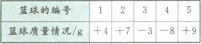 |篮球质量情况/g|+4|+7|-3|-8|+9|