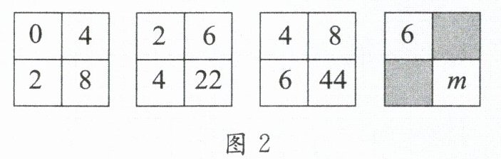 7. 如图 2,填在各正方形中的四个数之间都有着相同的规律,根据这种规律可知$m$的值是(