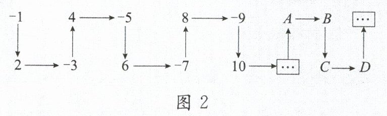 。(填“正有理数”或“负有理数”)(2) 第2025个数排在对应于A,B,C,D中的哪个位置?这个数是多少?