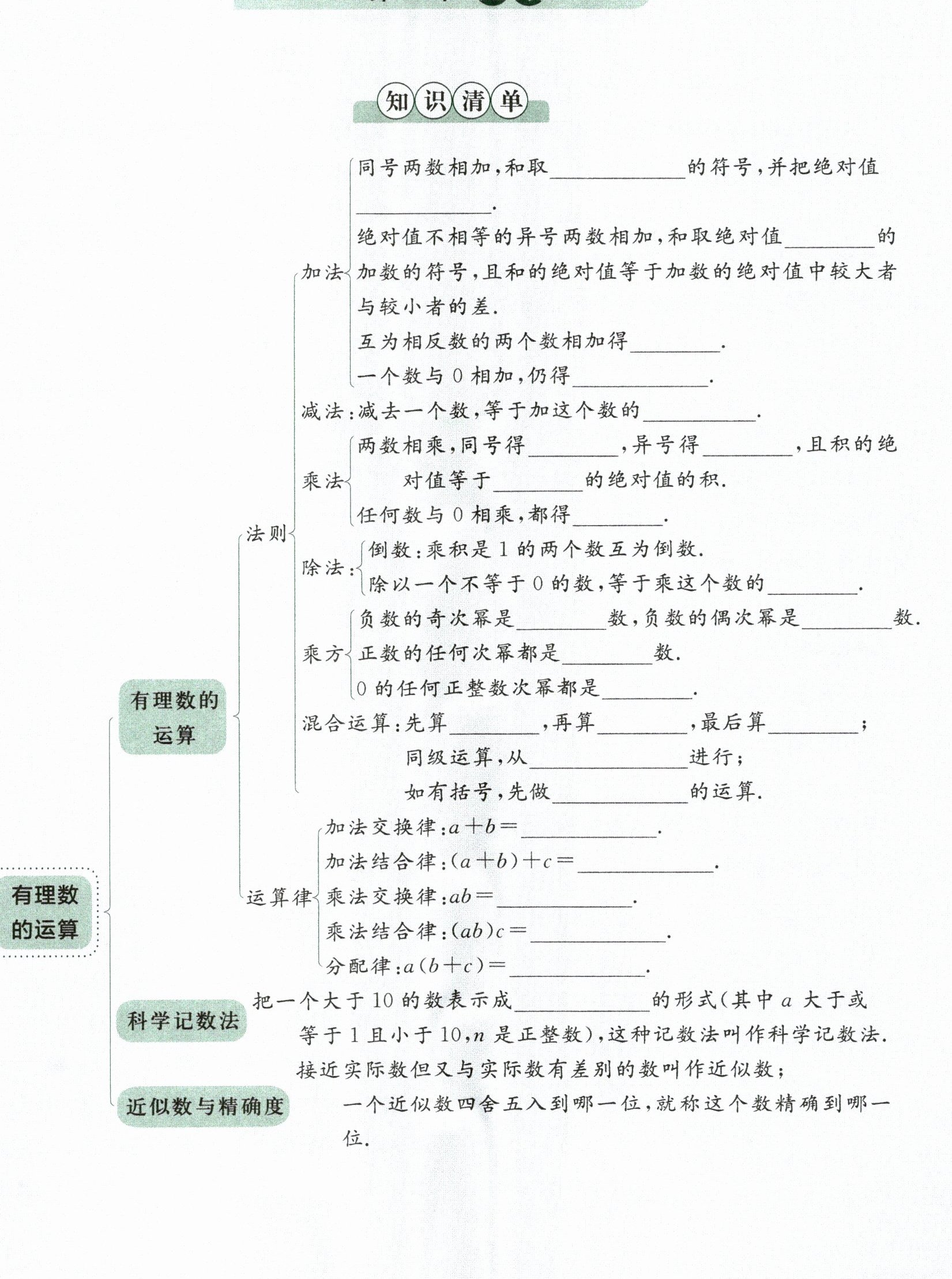 - 分配律:$a(b + c) = $______.
