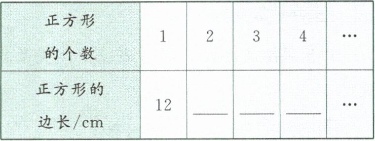 | 正方形的边长/$\mathrm{cm}$ | 12 |
