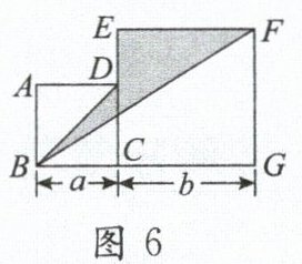 5. 如图 6,四边形 $ ABCD $与四边形 $ CGFE $是两个边长分别为 $ a $,$ b $的正方形,则阴影部分的面积 $ S = $
