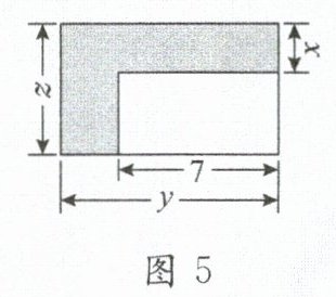 4. (教材第 81 页例 4 变式)图 5 是一个机器零件的截面图,用代数式表示图中阴影部分的面积.当 $ x = 2 \, cm $,$ y = 10 \, cm $,$ z = 6 \, cm $时,求阴影部分的面积.