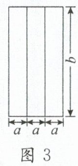 1. 如图 3,一个组合柜的柜门由 3 个完全相同的长方形组成.若要在这个组合柜柜门的四周贴上装饰条,且 $ a = 0.5 \, m $,$ b = 3 \, m $,则所需装饰条的总长度是(
