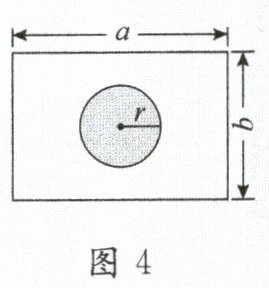 14. 如图4,在一个长为$a m$,宽为$b m的长方形休闲广场的中央设计了一个半径为r m$的圆形音乐喷泉.当$a = 15m$,$b = 12m$,$r = 4m$时,休闲广场空地(空白部分)的面积为