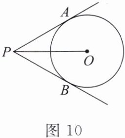 2. 如图 10,PA,PB 是⊙O 的两条切线,A,B 为切点,∠APB = 60°,PO = 4,⊙O 的半径是