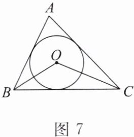 2. 如图 7,已知⊙O 是△ABC 的内切圆,∠A = 70°,则∠BOC =