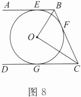 3. 如图 8,AB,BC,CD 分别与⊙O 相切于点 E,F,G,且 AB//CD。若 OB = 6,OC = 8。