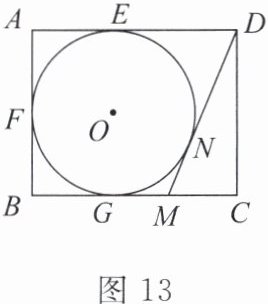 5. 如图 13,在矩形 ABCD 中,AB = 4,AD = 5,AD,AB,BC 分别与⊙O 相切于 E,F,G 三点,过点 D 作⊙O 的切线交 BC 于点 M,切点为 N。求 DN 的长。