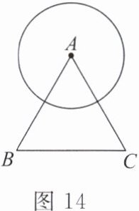 6. 如图 14,等边三角形 ABC 的边长为 2,⊙A 的半径为 1,D 是 BC 边上的动点,过点 D 作⊙A 的切线,切线长的最小值是(