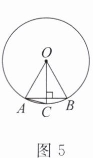 2. 如图 5,在 $ \odot O $ 中,$ OA = AB $,半径 $ OC \perp $ 弦 $ AB $,则下列结论错误的是(