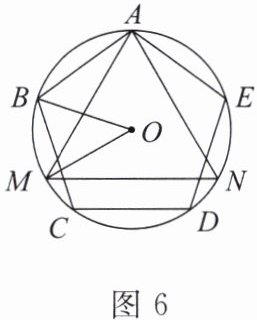 3. 如图 6,正五边形 $ ABCDE $ 和正三角形 $ AMN $ 都是 $ \odot O $ 的内接多边形,则 $ \angle BOM = $