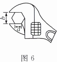 8. 如图6,要拧开一个边长为$a= 6\mathrm{mm}$的正六边形螺帽,扳手张开的开口$b$至少为(