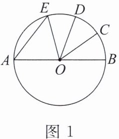 3. 如图1,$AB是\odot O$的直径,$\overset{\frown}{BC}= \overset{\frown}{CD}= \overset{\frown}{DE}$,$\angle AOE= 75^{\circ}$,则$\angle COD$的度数是(
