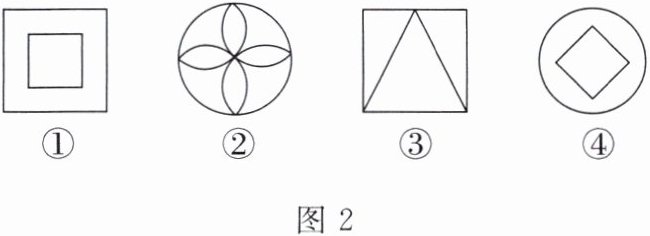 4. 在4张完全相同的卡片上分别画上如图2所示的图形①②③④。在看不见卡片上的图形的情况下随机抽取1张,卡片上的图形是中心对称图形的概率是