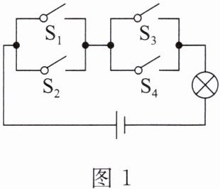 3. 在图1的电路中,随机闭合开关 $ S_{1} $,$ S_{2} $,$ S_{3} $,$ S_{4} $ 中的两个,求能够点亮灯泡的概率。