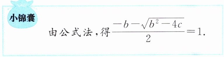 。小锦囊 由公式法,得$\frac{-b-\sqrt{b^{2}-4c}}{2}= 1$。