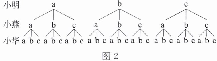解 根据题意,画树状图如图 2,记红球为 a,黄球为 b,白