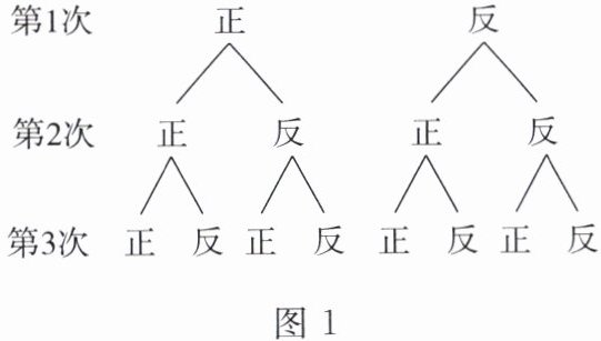 抛掷 1 枚质地均匀的硬币 3 次,记录下每一次的结果。用画树状图法列举出所有等可能的结果如图 1。