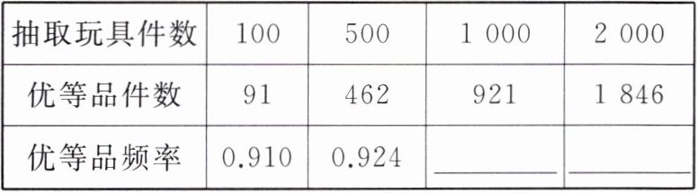 (2)根据表中数据,估计这批玩具的优等品概率是