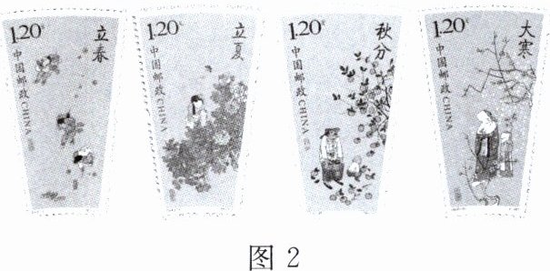9. “二十四节气”是中华上古农耕文明的智慧结晶,被国际气象界誉为“中国第五大发明”。小文购买了“二十四节气”主题邮票,他要将“立春”“立夏”“秋分”“大寒”四张邮票(如图2)中的两张送给好朋友小乐。小文将它们背面朝上放在桌面上(邮票背面完全相同),让小乐从中随机抽取一张(不放回),再从中随机抽取一张,则小乐抽到的两张邮票恰好是“立春”和“立夏”的概率是(