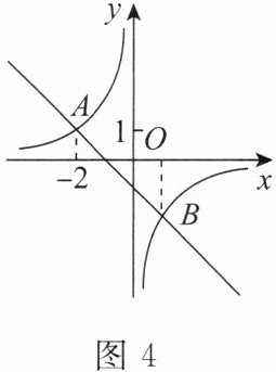 例 3 如图 4,一次函数 $ y = ax + b (a \neq 0) $ 的图象与反比例函数 $ y = \frac{k}{x} (k \neq 0) $ 的图象交于点 $ A(-2, 1) $,$ B(1, -2) $。