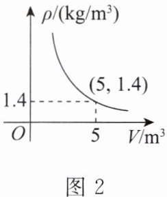 3. 在一个可以改变容积的密闭容器内,装有质量为 $m(kg)$ 的某种气体,当改变容积 $V(m^{3})$ 时,气体的密度 $\rho(kg/m^{3})$ 也随之改变。已知 $\rho$ 与 $V$ 在一定范围内满足 $\rho=\frac{m}{V}$,它的图象如图 $2$ 所示,则当容积为 $7\ m^{3}$ 时,气体的密度为