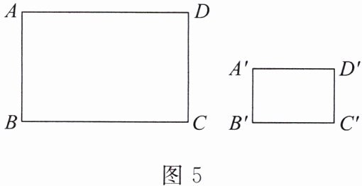 5. 如图 5,在矩形 $ABCD$ 和矩形 $A'B'C'D'$ 中,已知 $AB = 8$ $cm$,$BC = 12$ $cm$,$A'B' = 4$ $cm$,$B'C' = 6$ $cm$.