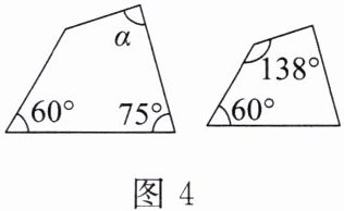 3. 已知如图 4 所示的两个四边形相似,则 $\angle \alpha$ 的度数是(