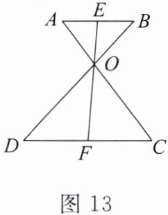 5. 如图 13,$AB // CD$,点 $E$ 在 $AB$ 上,点 $F$ 在 $CD$ 上,$AC$,$BD$,$EF$ 相交于点 $O$,则图中相似三角形共有