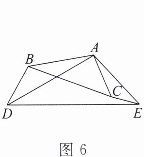 3. 如图 6,$AB = 3$,$AC = 2$,$BC = 4$,$AE = 3$,$AD = 4.5$,$DE = 6$,$\angle BAD = 20^{\circ}$,则 $\angle CAE = $