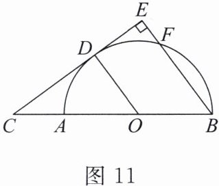7. 如图 11,AB 为半圆 $O$ 的直径,$C$ 为 $BA$ 延长线上一点,$CD$ 切半圆 $O$ 于点 $D$,连接 $OD$. 作 $BE \perp CD$ 于点 $E$,交半圆 $O$ 于点 $F$. 已知 $CE = 12$,$BE = 9$.