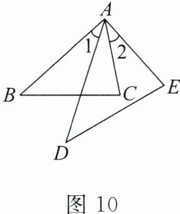 6. 如图 10,$\angle 1 = \angle 2$,$\angle B = \angle D$,$AB = DE = 5$,$BC = 4$.