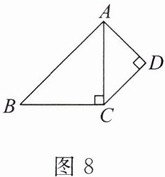 4. 如图 8,已知 $\angle ACB = \angle ADC = 90^{\circ}$,$AD = 2$,$CD = 2$,当 $BC$ 的长为