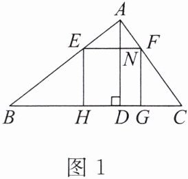 例 1 如图 1,在△ABC 中,$BC = 120$,高 $AD = 60$,正方形 $EFGH$ 的一边在 $BC$ 上,点 $E$,$F$ 分别在 $AB$,$AC$ 上,$AD$ 交 $EF$ 于点 $N$,则 $AN$ 的长为(