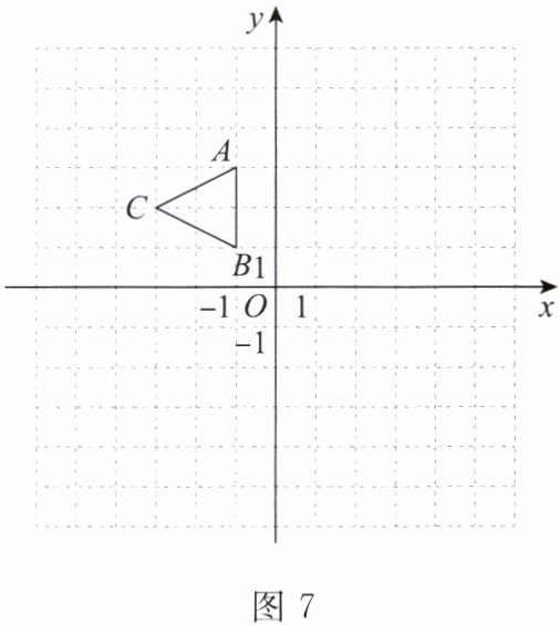 3. 如图7,在平面直角坐标系中,$\triangle ABC三个顶点的坐标分别为A(-1,3)$,$B(-1,1)$,$C(-3,2)$。