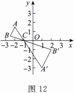 8. 如图12,在$\triangle ABC$中,$A$,$B两点在x$轴的上方,点$C的坐标是(-1,0)$。以点$C$为位似中心,相似比为$2$,在$x轴的下方作\triangle ABC的位似图形\triangle A'B'C$。若点$B的对应点B'的横坐标是2$,求点$B$的横坐标。