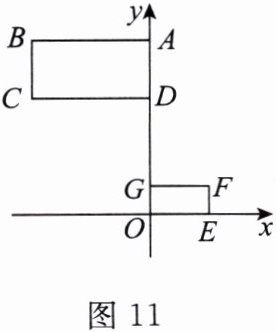 7. 如图11,矩形$OEFG的两边OE和OG$都在坐标轴上,以$y轴上一点为位似中心作这个矩形的位似图形ABCD$,且对应点$C和F的坐标分别为(-4,4)$,$(2,1)$。则位似中心的坐标是(