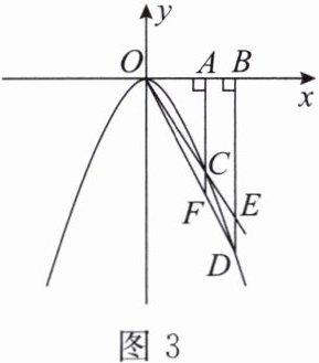 证明:设点$ A(m,0) $, $ B(n,0) $,过$ A $作$ x $轴垂线交抛物线$ y=-x^2 $于点$ C $,则$ C(m,-m^2) $。直线$ OC $解析式为$ y=-mx $(由$ O(0,0) $和$ C(m,-m^2) $得斜率$ k=-m $)。直线$ OC $与过$ B $的垂线$ x=n $交于$ E $,则$ y_E=-m \cdot n=-mn $。